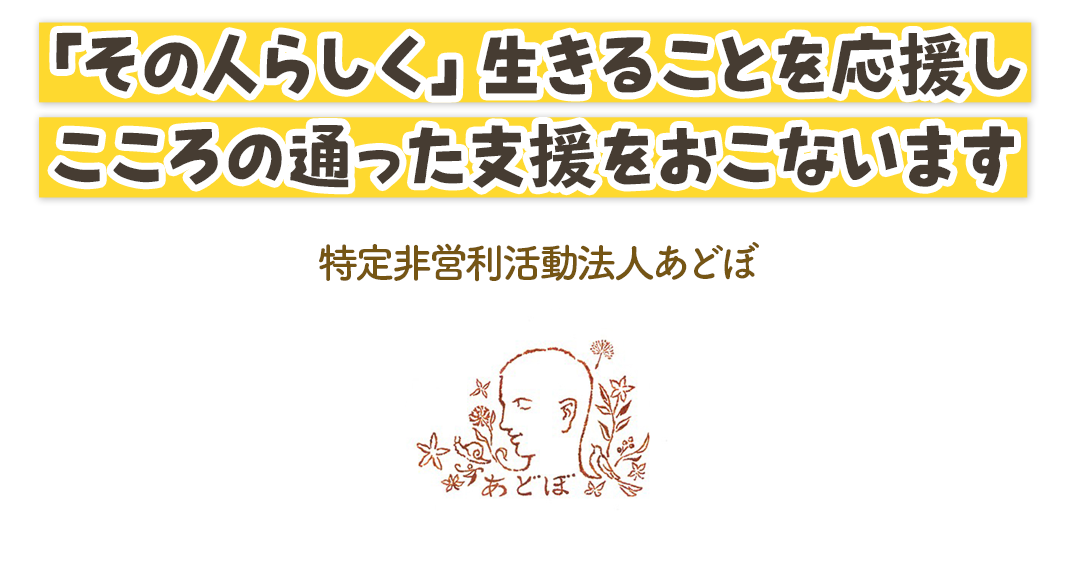 あどぼは、一人ひとりが本来持ち合わせている「その人らしく」生きることを応援する支援が提供できる場を目指しています。